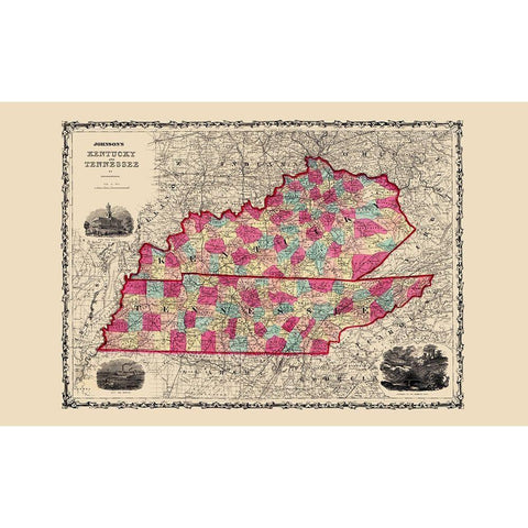 Kentucky, Tennessee - Johnson 1860 Gold Ornate Wood Framed Art Print with Double Matting by Johnson