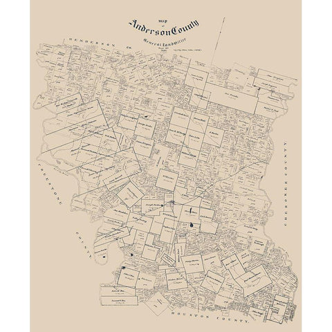 Anderson County Texas - Walker 1903 Gold Ornate Wood Framed Art Print with Double Matting by Walker