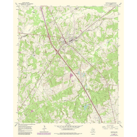 Buffalo Texas Quad - USGS 1965 Gold Ornate Wood Framed Art Print with Double Matting by USGS