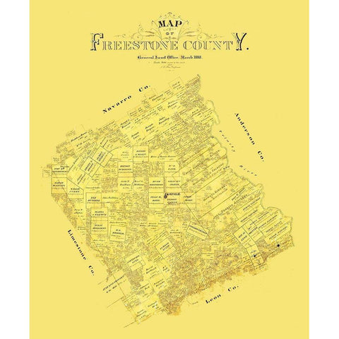Freestone County Texas - Blau 1888 Gold Ornate Wood Framed Art Print with Double Matting by Blau