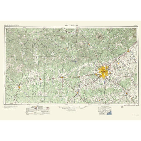 San Antonio Texas Quad - USGS 1957 Gold Ornate Wood Framed Art Print with Double Matting by USGS