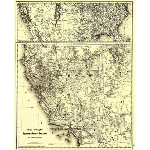 Southern Pacific Railroad with Connections 1875 Gold Ornate Wood Framed Art Print with Double Matting by Colton