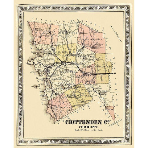 Chittenden Vermont - Beers 1878 Gold Ornate Wood Framed Art Print with Double Matting by Beers