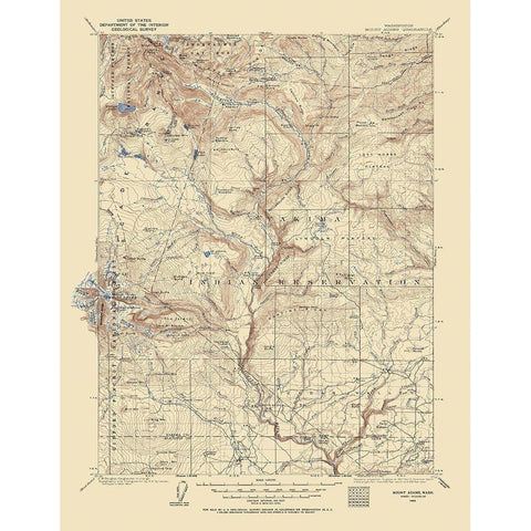 Mt Adams Washington Quad - USGS 1904 Gold Ornate Wood Framed Art Print with Double Matting by USGS