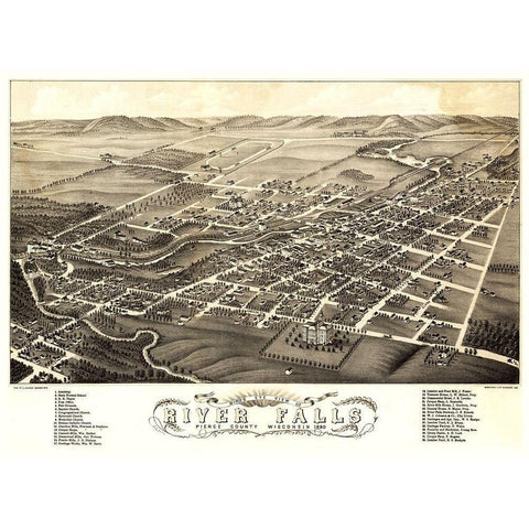 River Falls Wisconsin - Stoner 1880 Gold Ornate Wood Framed Art Print with Double Matting by Stoner