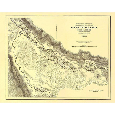 Wyoming Territory Up Geyser Basin Fire Hole River Gold Ornate Wood Framed Art Print with Double Matting by USGS