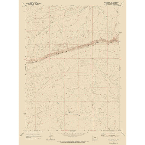 South West Red Desert Wyoming Quad - USGS 1970 Gold Ornate Wood Framed Art Print with Double Matting by USGS