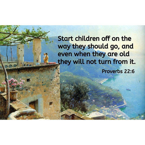 Bible Verse Quote Proverbs 22:6, Peder Mork Monsted - The Ravello Coastline Gold Ornate Wood Framed Art Print with Double Matting by ArtsyQuotes