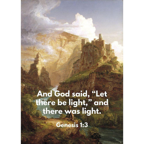 Bible Verse Quote Genesis 1:3, Thomas Cole - The Fountain of Vaucluse Gold Ornate Wood Framed Art Print with Double Matting by ArtsyQuotes