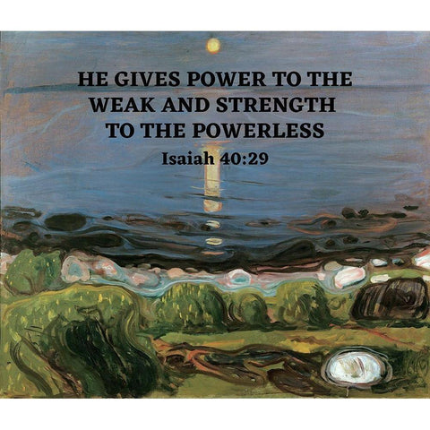 Bible Verse Quote Isaiah 40:29, Edvard Munch - Summer Night by the Beach Gold Ornate Wood Framed Art Print with Double Matting by ArtsyQuotes