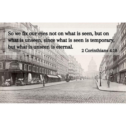 Bible Verse Quote 2 Corinthians 4:18, Charles Marville - Soufflot Street Gold Ornate Wood Framed Art Print with Double Matting by ArtsyQuotes