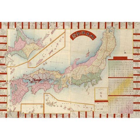 Japan with Points of Interest and table of Counties Gold Ornate Wood Framed Art Print with Double Matting by Vintage Maps