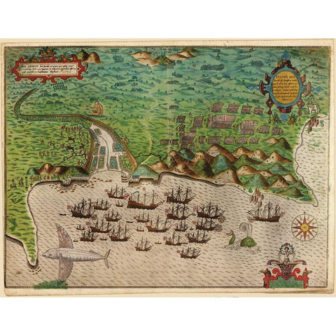 Voyages of Sir Francis Drake 1589 Gold Ornate Wood Framed Art Print with Double Matting by Vintage Maps