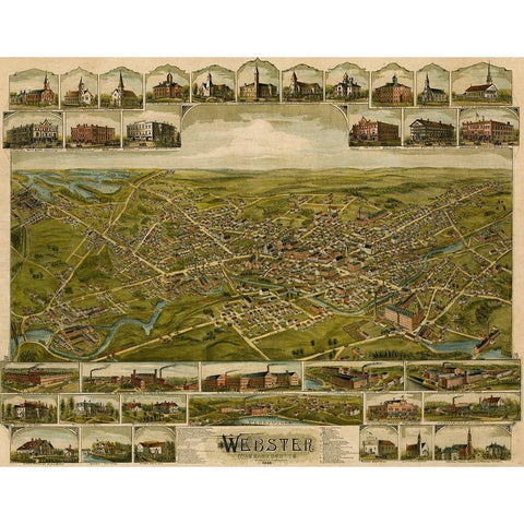 Webster-Massachusetts 1892 Gold Ornate Wood Framed Art Print with Double Matting by Vintage Maps