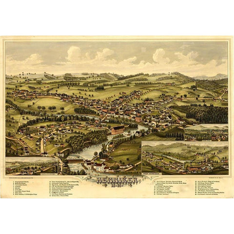 Henniker-New Hampshire 1889 Gold Ornate Wood Framed Art Print with Double Matting by Vintage Maps