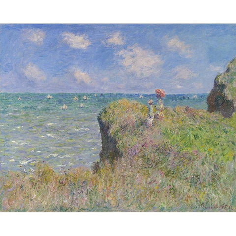 Cliff Walk at Pourville Gold Ornate Wood Framed Art Print with Double Matting by Monet, Claude