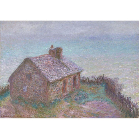 The Customs House at Varengeville Gold Ornate Wood Framed Art Print with Double Matting by Monet, Claude