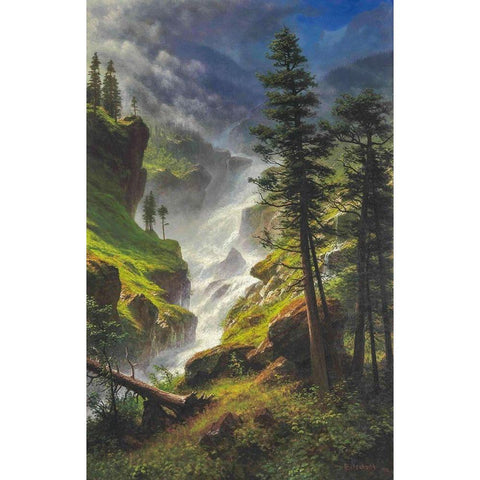 Rocky Mountain Waterfall Gold Ornate Wood Framed Art Print with Double Matting by Bierstadt, Albert