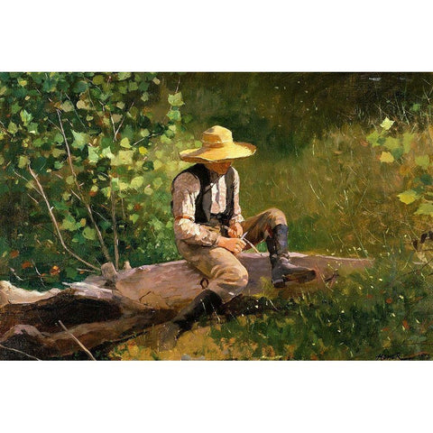 The whittling Boy Gold Ornate Wood Framed Art Print with Double Matting by Homer, Winslow