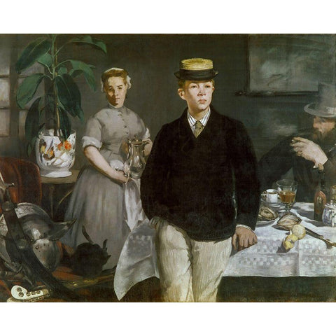 Luncheon in the Studio Gold Ornate Wood Framed Art Print with Double Matting by Manet, Edouard