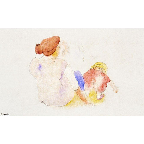 Woman with Child in Red Suit Gold Ornate Wood Framed Art Print with Double Matting by Demuth, Charles