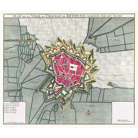 Map of Bethune-France Gold Ornate Wood Framed Art Print with Double Matting by Vintage Maps