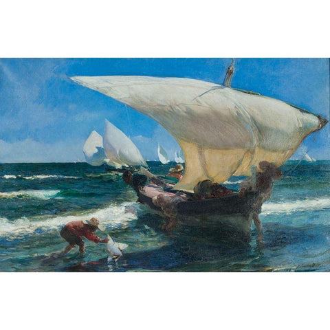 On the coast of Valencia Gold Ornate Wood Framed Art Print with Double Matting by Sorolla, Joaquin