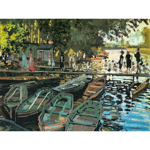 Bathers at the Grenouillere 1869 Gold Ornate Wood Framed Art Print with Double Matting by Monet, Claude