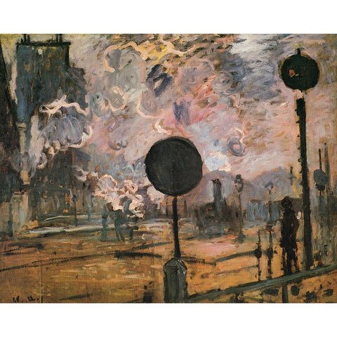 La Gare St. Lazare-signal 1876 Gold Ornate Wood Framed Art Print with Double Matting by Monet, Claude