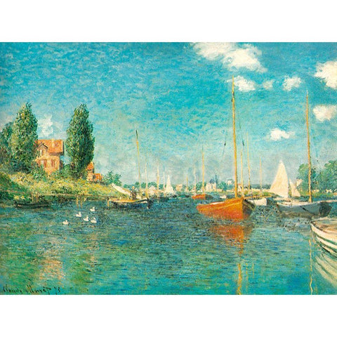 Red Boats 1875 Gold Ornate Wood Framed Art Print with Double Matting by Monet, Claude