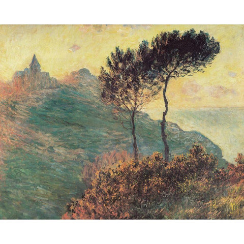 Varengeville Church with trees 1882 Gold Ornate Wood Framed Art Print with Double Matting by Monet, Claude