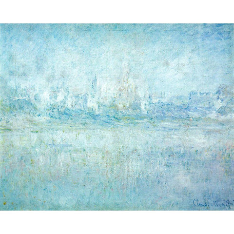 Vetheuil in the Fog 1879 Gold Ornate Wood Framed Art Print with Double Matting by Monet, Claude