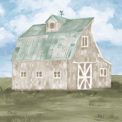 Patina Barn I White Modern Wood Framed Art Print with Double Matting by Brent, Paul