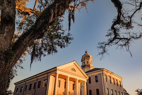 Courthouse 6 Sunrise White Modern Wood Framed Art Print with Double Matting by Malone, Will