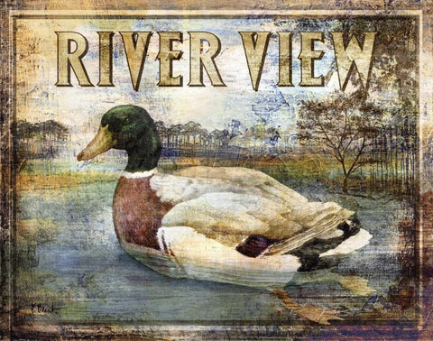 Duck Sign I White Modern Wood Framed Art Print with Double Matting by Brent, Paul