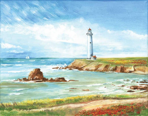 Lighthouse Path White Modern Wood Framed Art Print with Double Matting by Gorham, Gregory