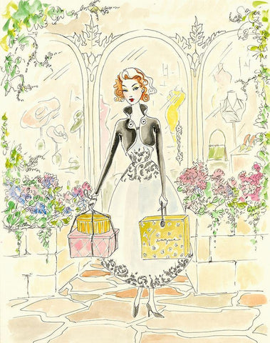 Boutique Shopping I White Modern Wood Framed Art Print with Double Matting by Leal, Steve