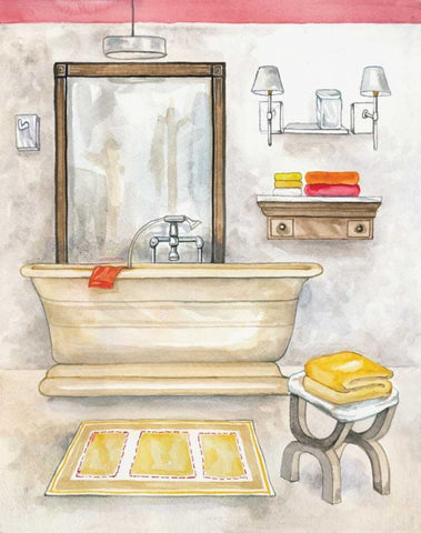 Watercolor Bath II White Modern Wood Framed Art Print with Double Matting by Ferry, Margaret