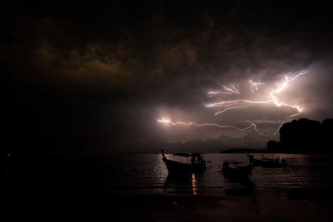 Railay Beach Lightning II White Modern Wood Framed Art Print with Double Matting by Berzel, Erin