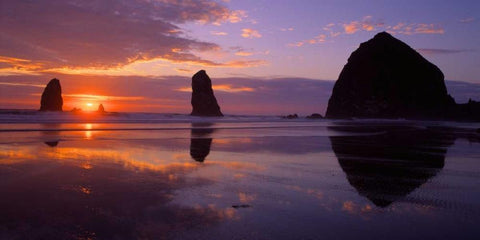 Cannon Beach II White Modern Wood Framed Art Print with Double Matting by Leahy, Ike
