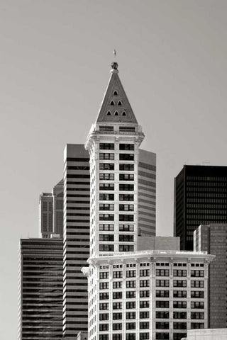 Smith Tower BW White Modern Wood Framed Art Print with Double Matting by Taylor, Douglas
