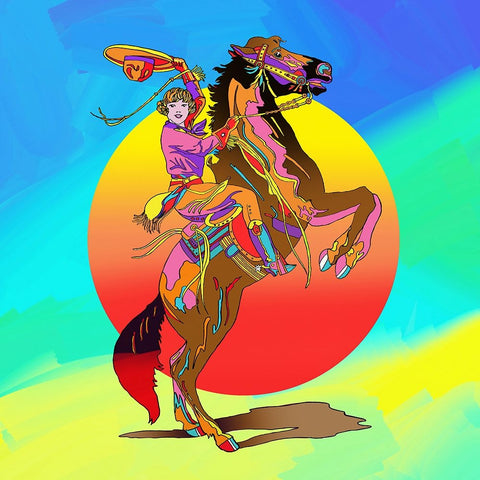 Pop-Art-Cowgirl White Modern Wood Framed Art Print with Double Matting by Green, Howie