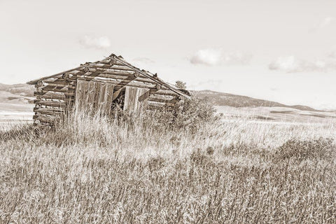 Old Log Cabin Sepia White Modern Wood Framed Art Print with Double Matting by Schell, Jennie Marie
