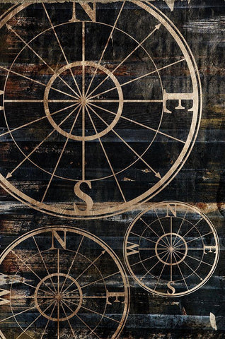 Wooden Compass White Modern Wood Framed Art Print with Double Matting by Grey, Jace