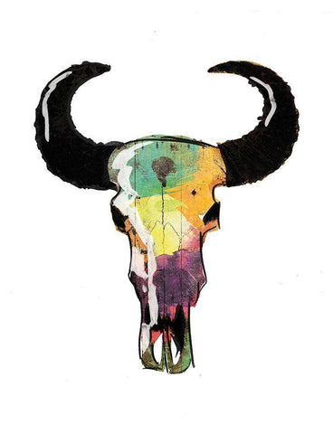 Watercolor Skull White Modern Wood Framed Art Print with Double Matting by Grey, Jace