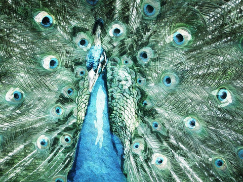 Looking Peacock White Modern Wood Framed Art Print with Double Matting by Villa, Mlli