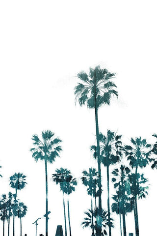 Palms in Teals White Modern Wood Framed Art Print with Double Matting by Villa, Mlli