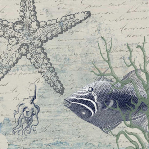 Blue Ocean White Modern Wood Framed Art Print with Double Matting by Lewis, Sheldon