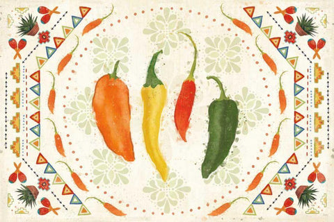 Tex Mex Fiesta I White Modern Wood Framed Art Print with Double Matting by Charron, Veronique