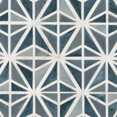 Teal Tile Collection VII White Modern Wood Framed Art Print with Double Matting by Vess, June Erica